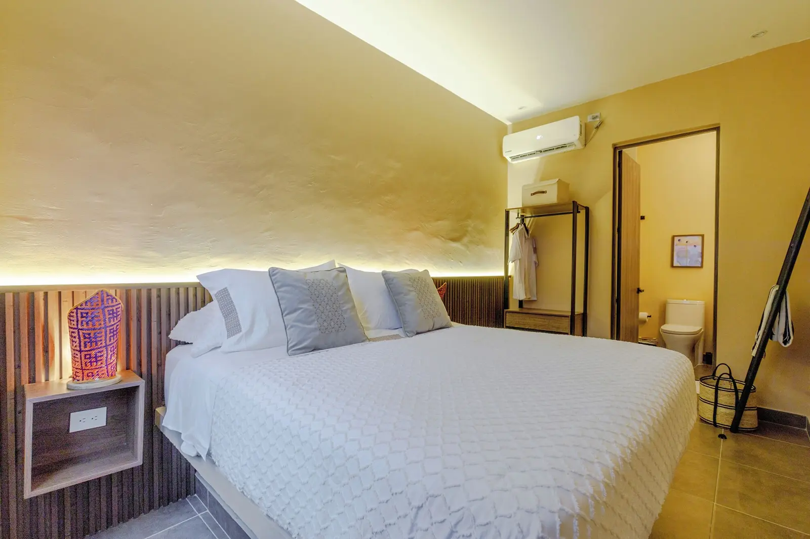 Descubre el confort y la serenidad en las habitaciones de Casa Tomasa en Riohacha. Espacios pensados para tu descanso, con camas cómodas, decoración moderna y detalles que te harán sentir como en casa. Desde tu habitación podrás contemplar la belleza de la ciudad y disfrutar de un ambiente tranquilo y acogedor.
